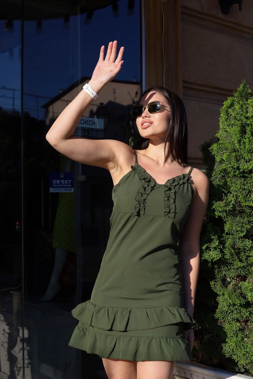 Жіночий сарафан з рюшею Хакі р.42