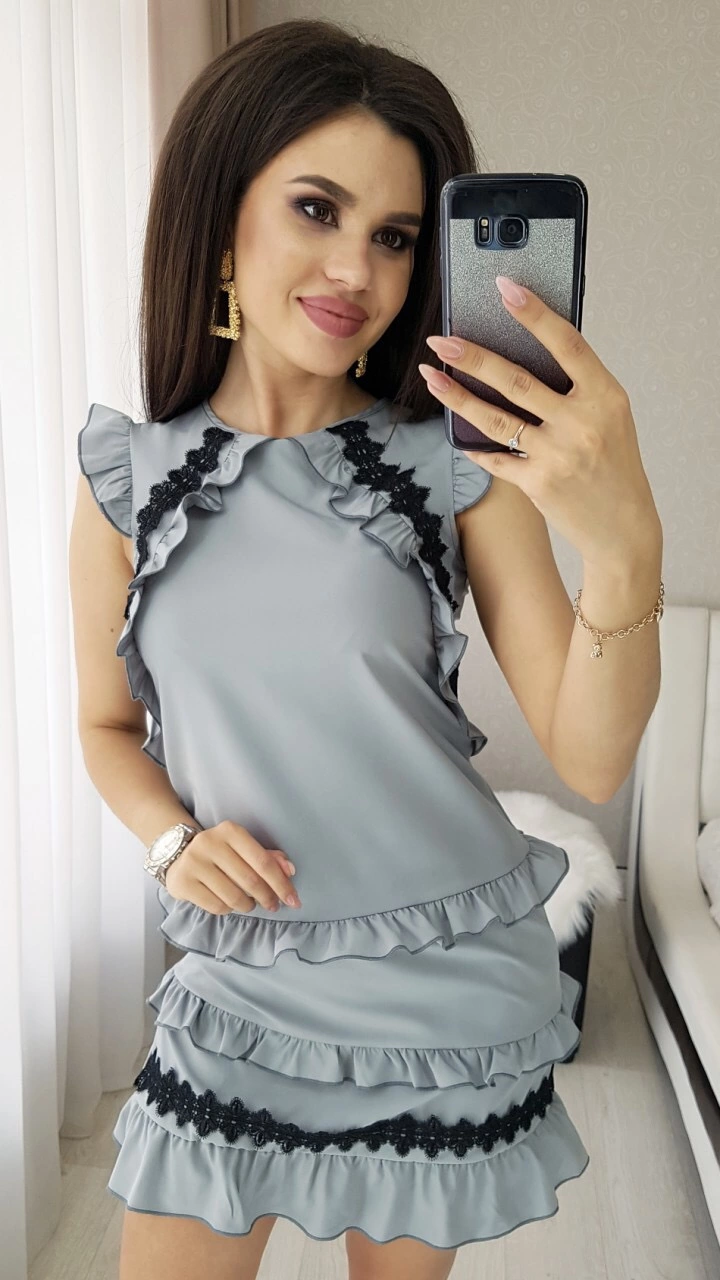 Жіноча сукня-сарафан з мереживом Сірий р.42