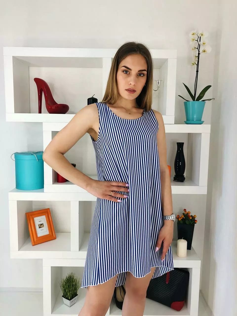 Жіночий сарафан вільного крою Синя вел полоска р.42