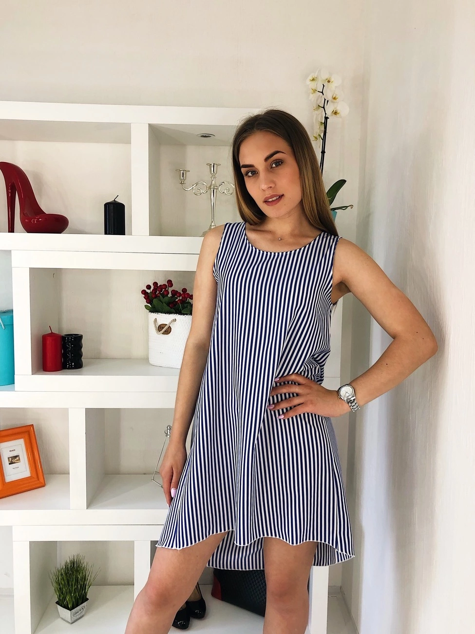 Жіночий сарафан вільного крою Синя дрібна полоска р.42