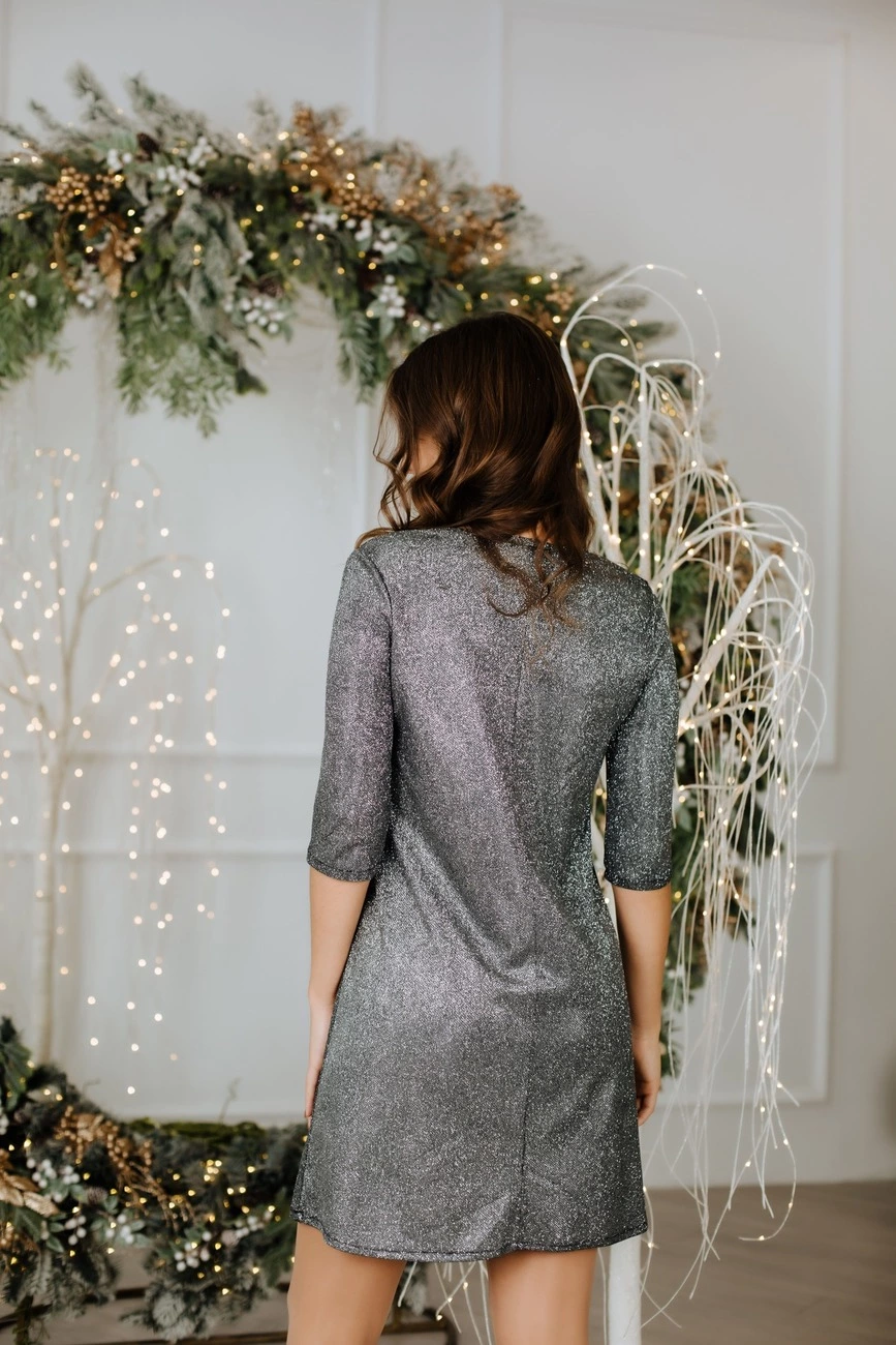 Жіноча блискуча сукня-трапеція Срібло р.42