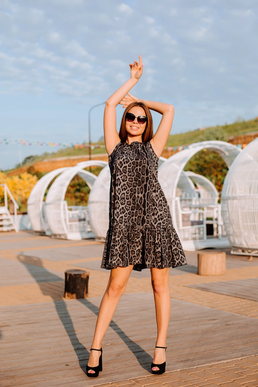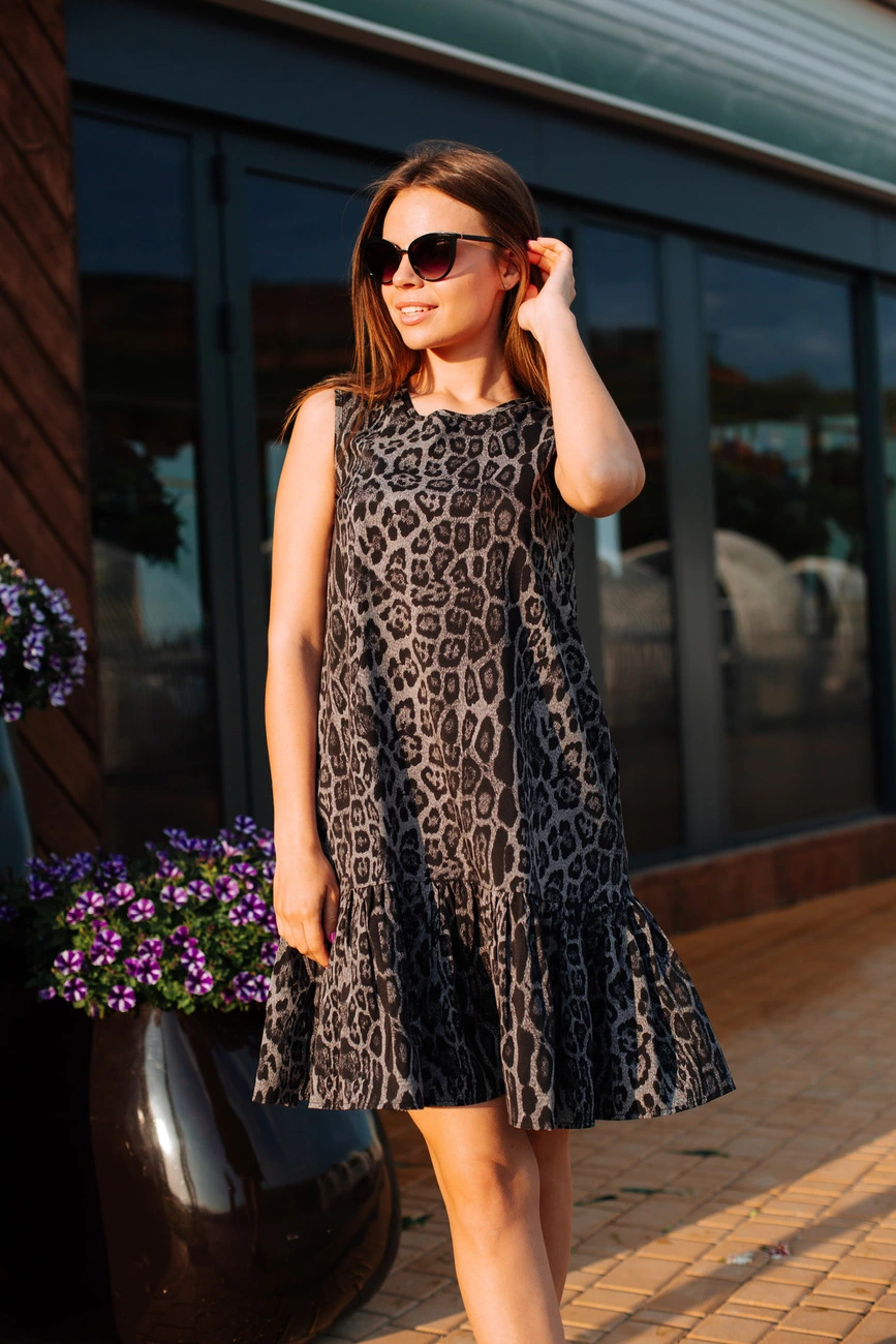 Жіночий сарафан з принтом Леопард тем.крупний р.42