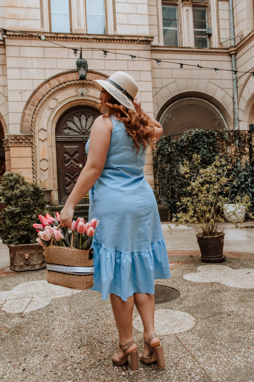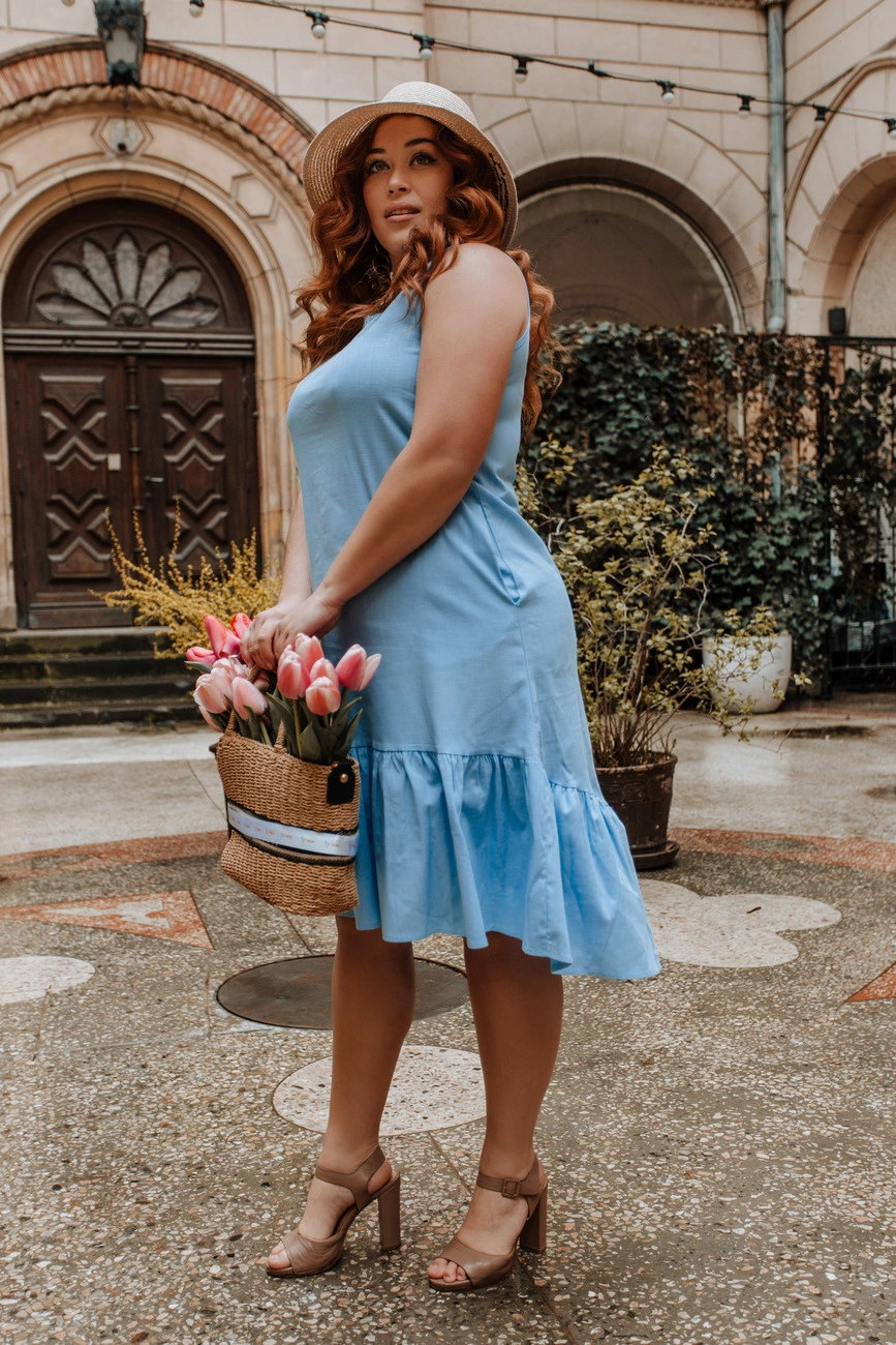 Жіноча сукня-сарафан з льону Блакитний р.50
