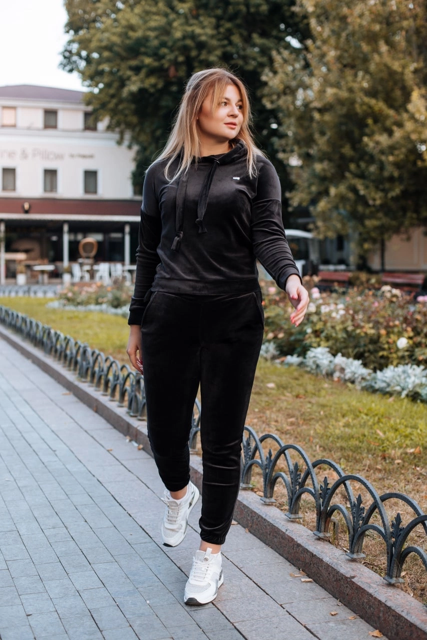 Жіночий велюровий костюм Чорний р.44