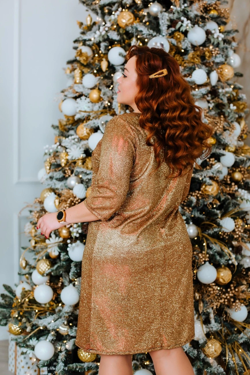 Жіноча блискуча сукня Червоний із золотом р.50