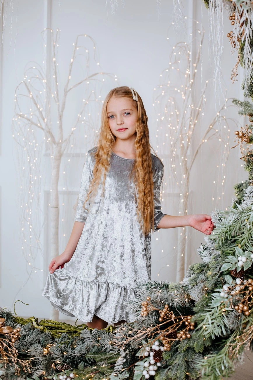 Підліткова сукня з воланом Срібло р.140