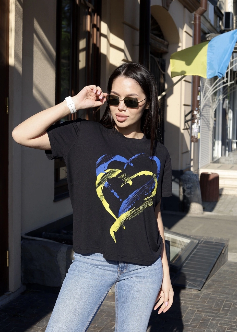 Жіноча футболка з принтами (Чорний , 1, 622, трикотаж) Чорний ( Патріотичне сердце) р.1