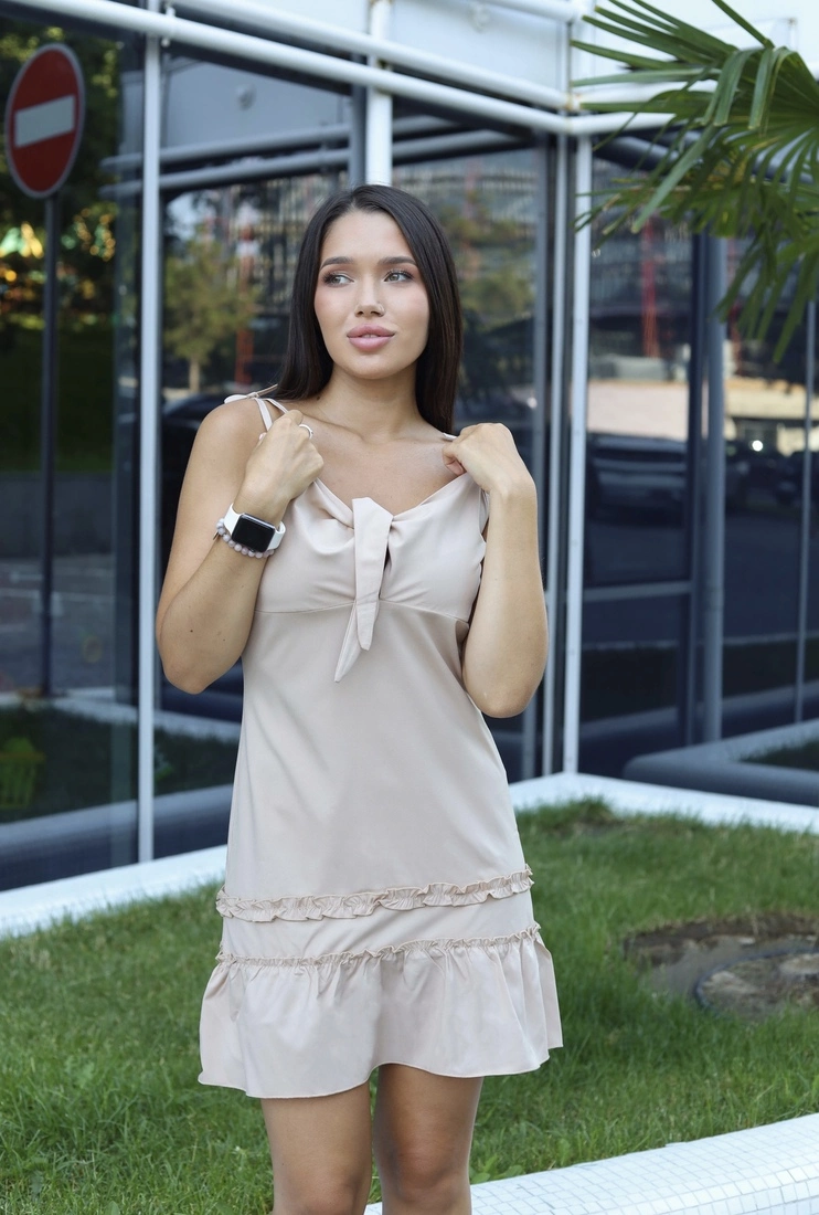Літній жіночий сарафан на тонких бретелях з рюшею
