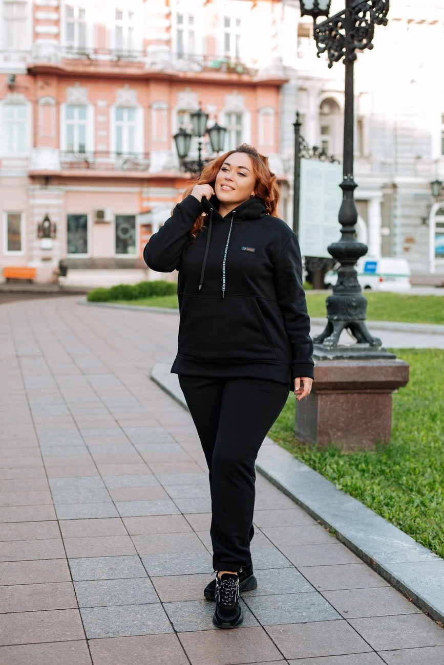 Жіночий спортивний костюм КЕНГУРУ фліс БАТАЛ Чорний р.50