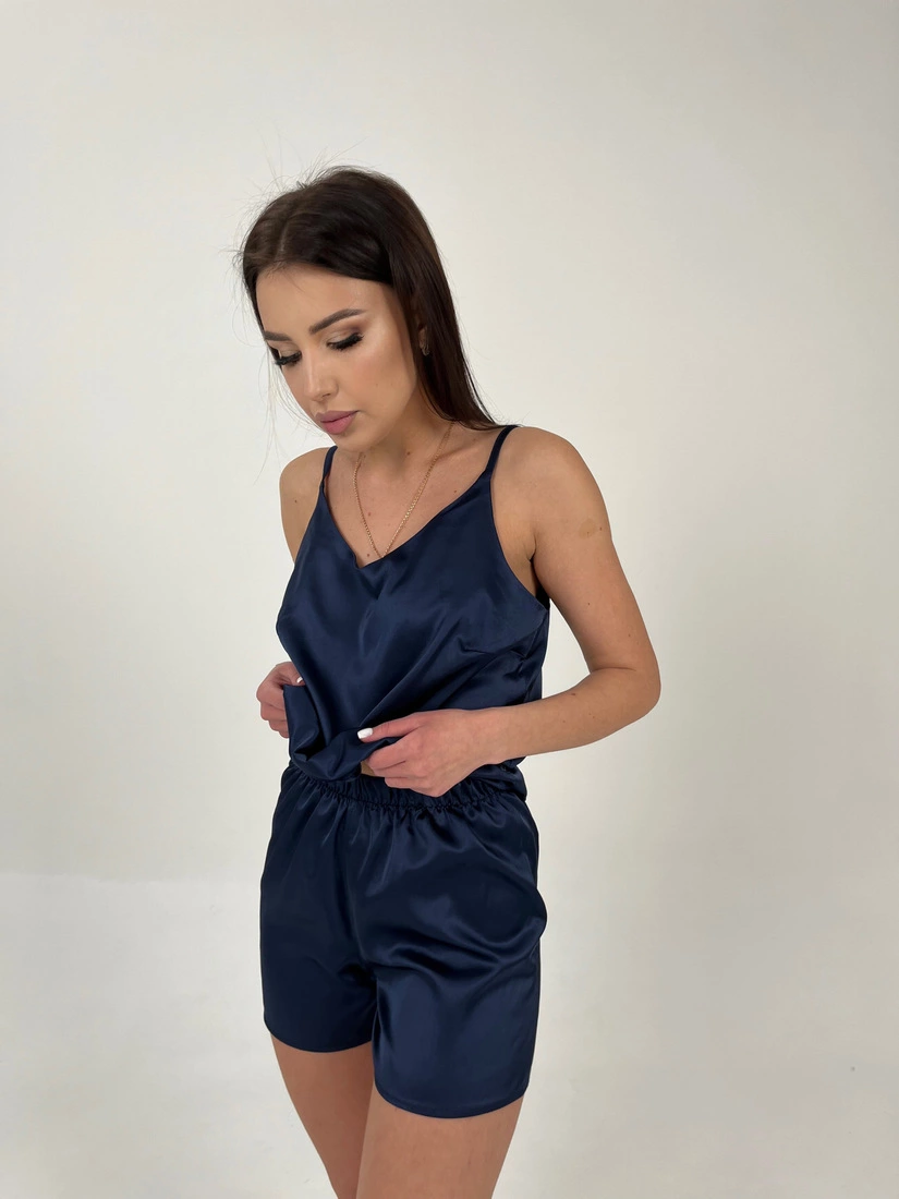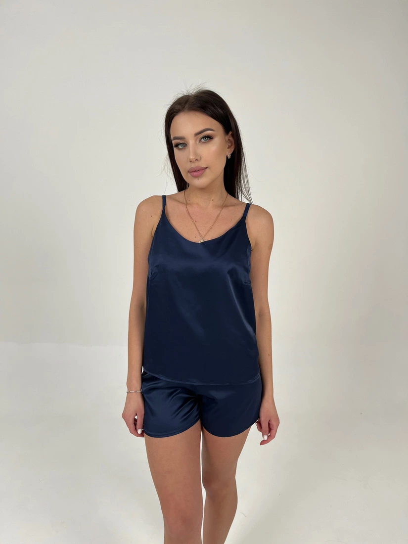 Жіноча піжама шорти та майка шовк Армані Синій 44