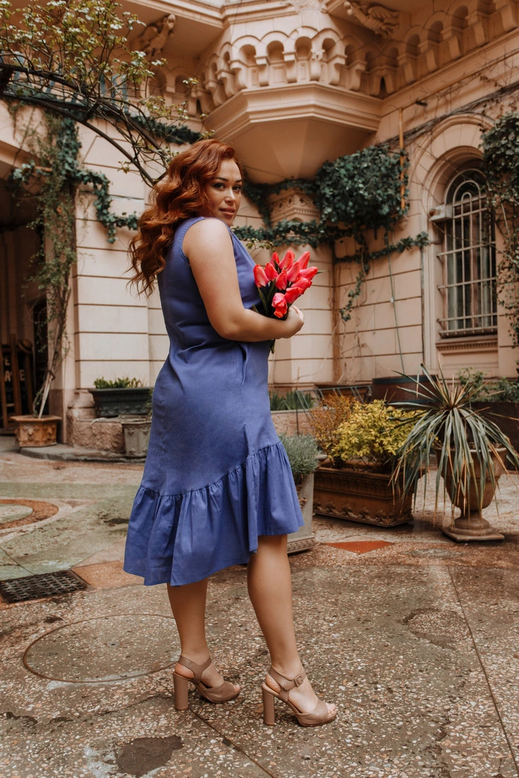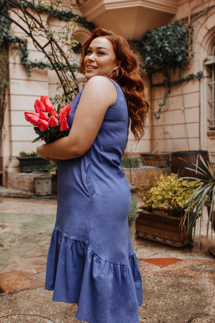 Жіноча сукня-сарафан з льону Блакитний 50