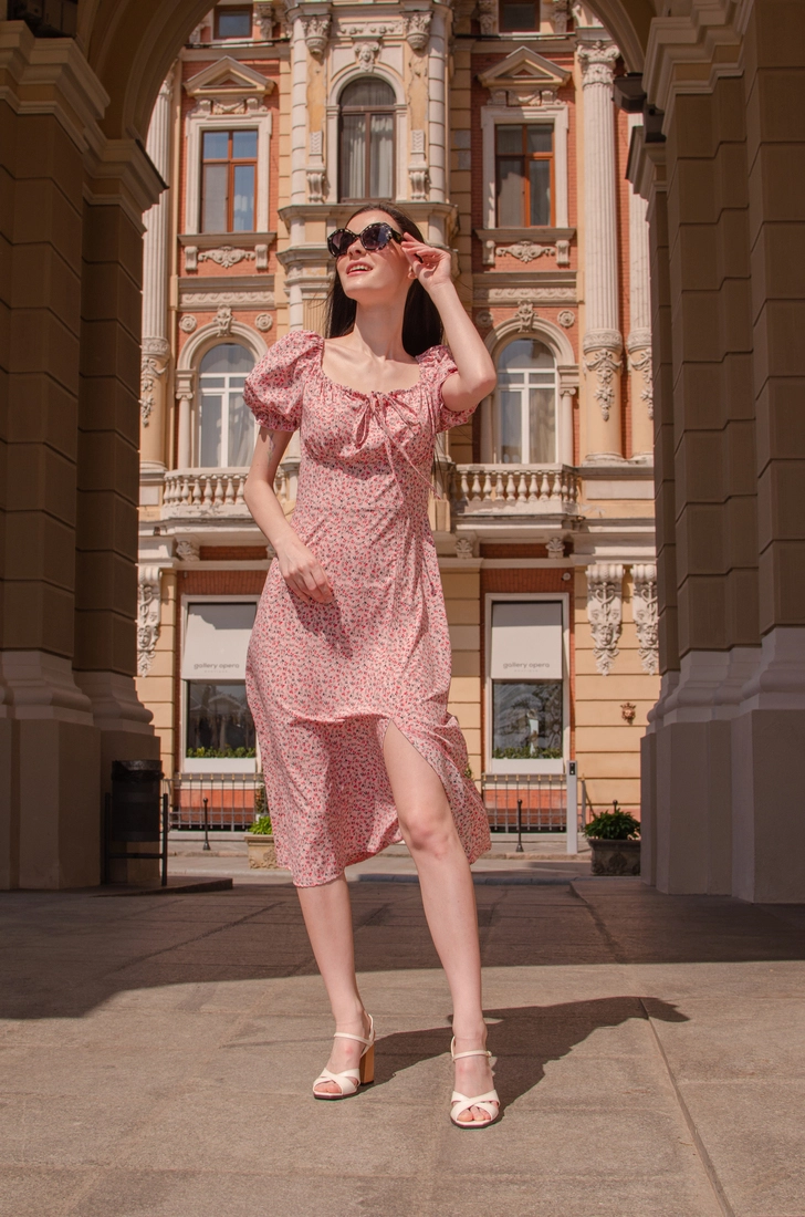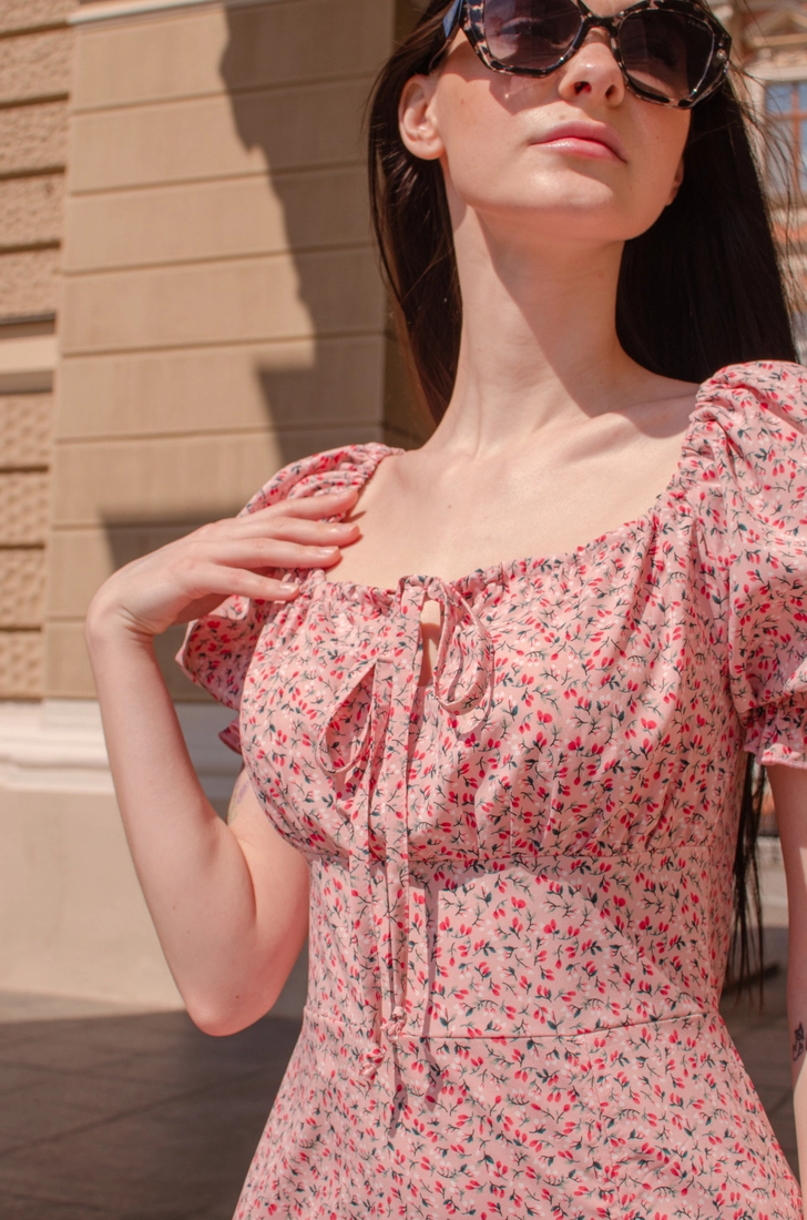 Жіноча сукня Селянка Пудра принт квітка 42