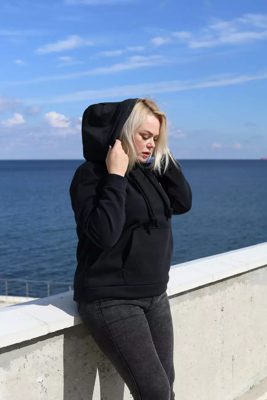 Жіночий батник (худі) НОРМА тринитка/начіс Чорний 1