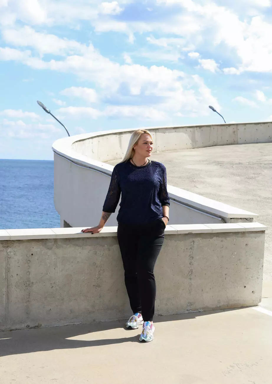 Жіночий костюм з гіпюром Синій 52