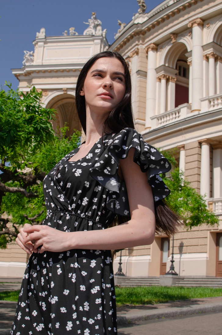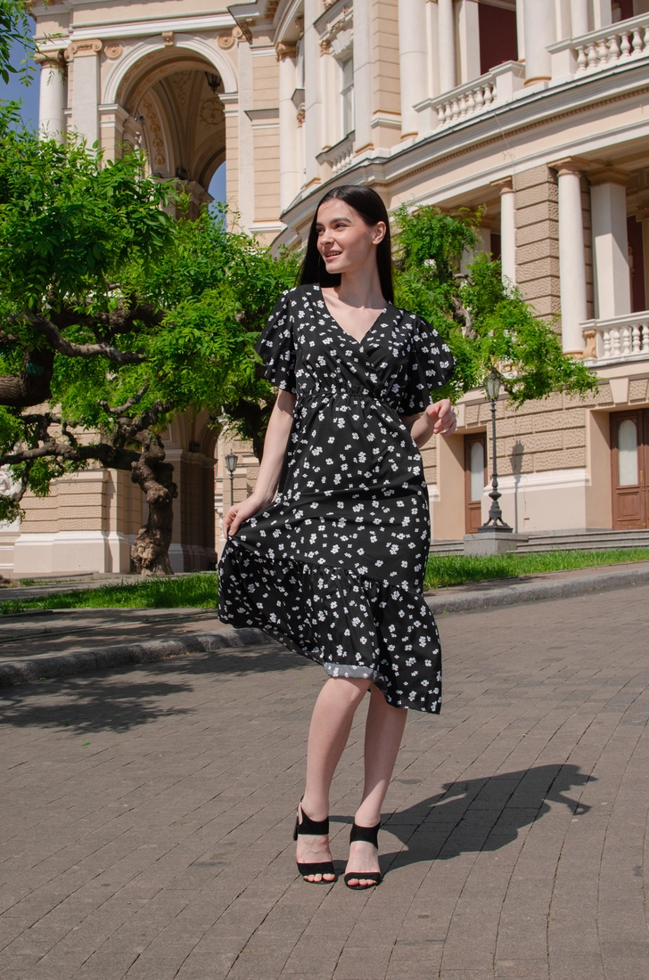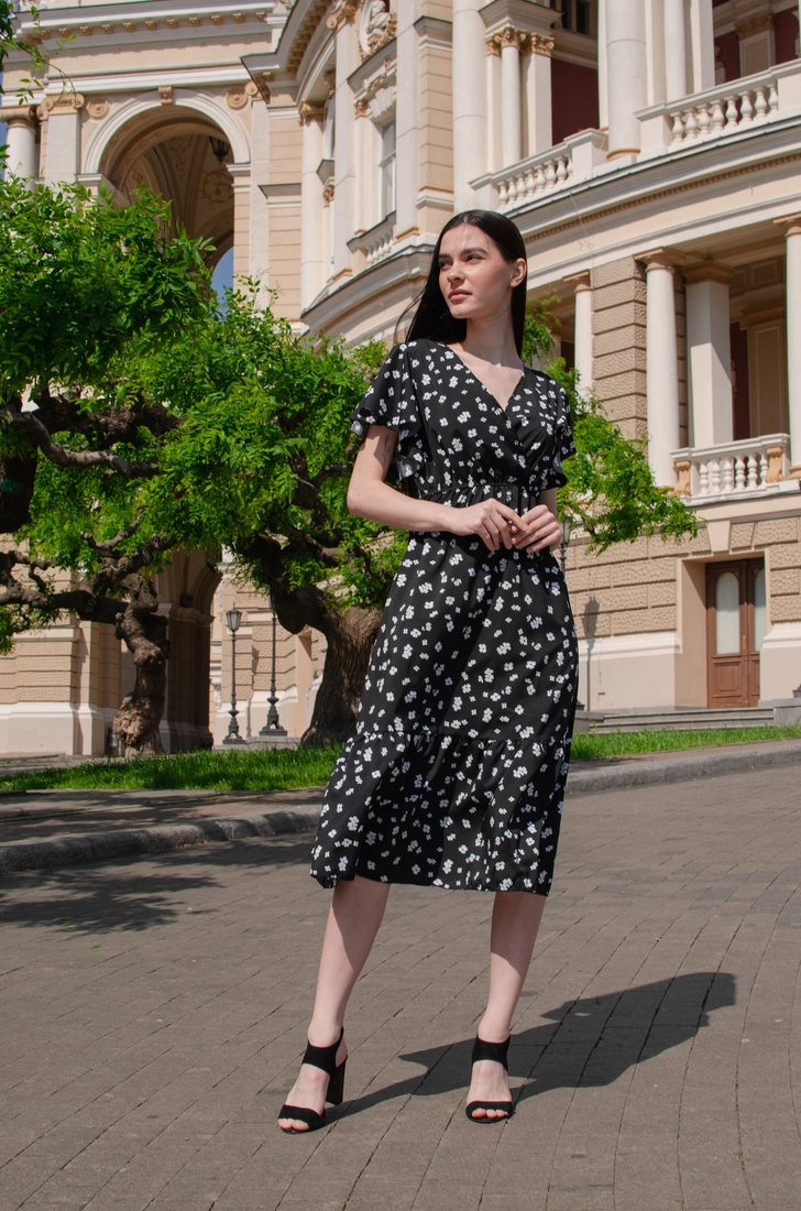 Жіночий сарафан Чорний принт квітка 42