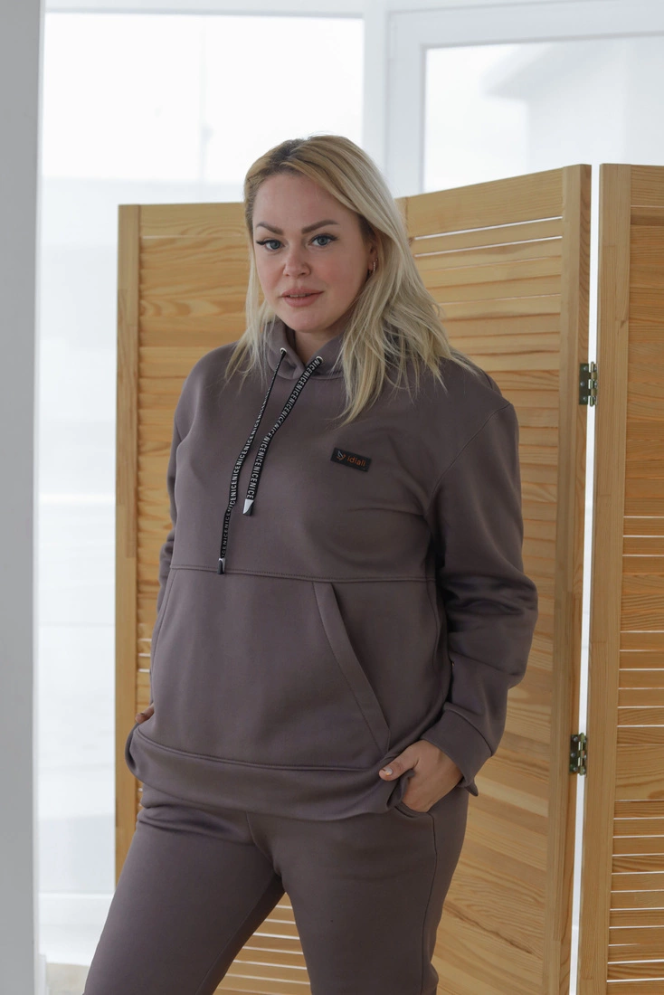 Жіночий спортивний костюм КЕНГУРУ фліс БАТАЛ Мокко р.52