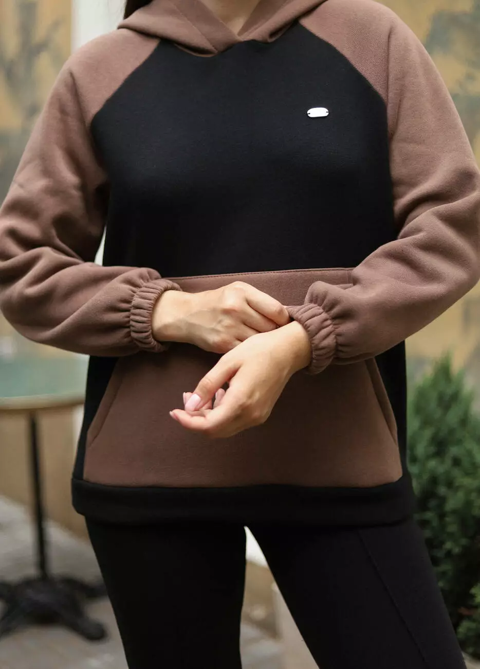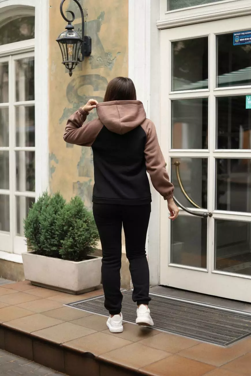 Жіночий спортивний костюм на флісі 42-48(батник з кольоровими вставками,чорні штани)