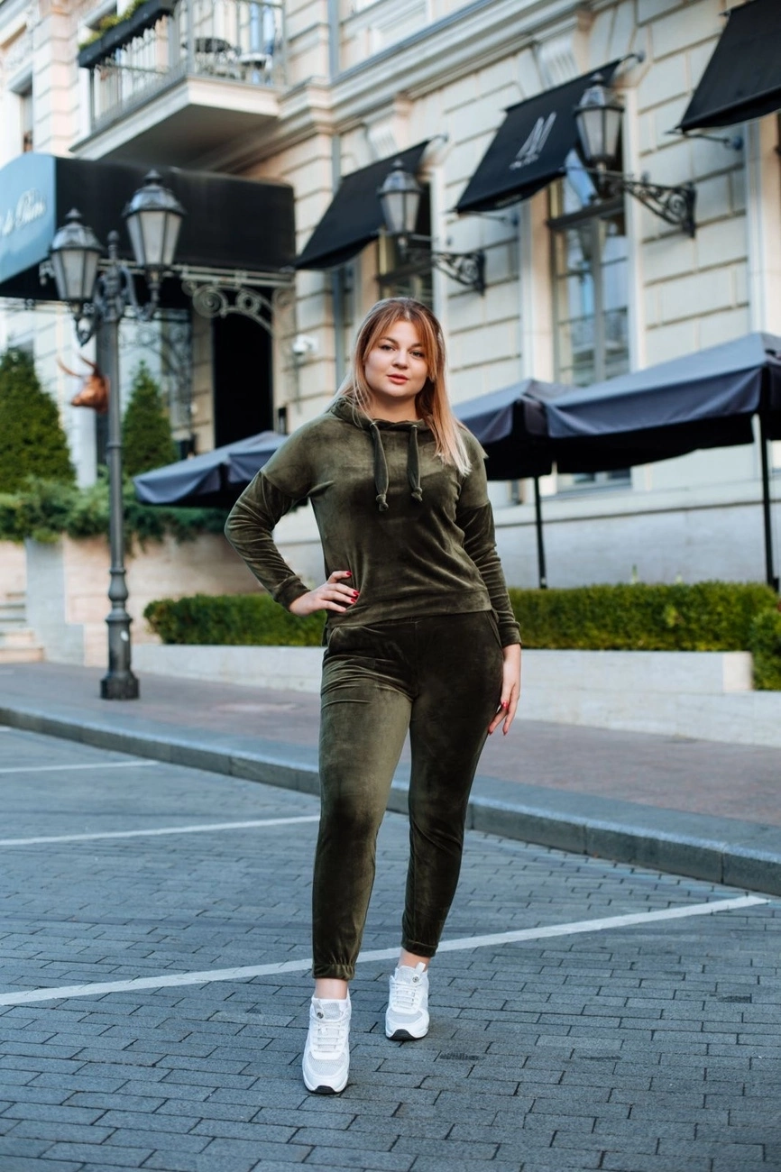 Жіночий велюровий костюм Хакі р.44